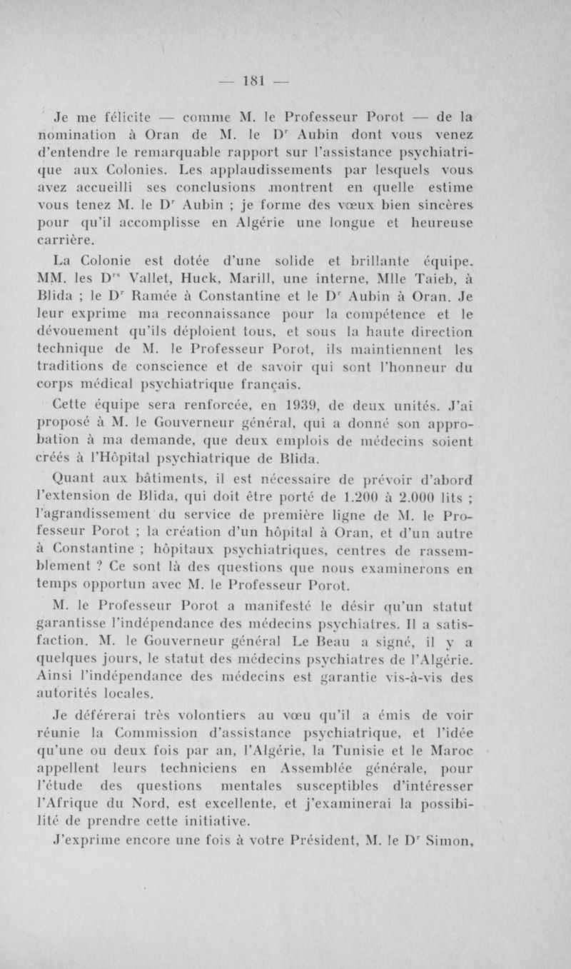 Congrès des médecins aliénistes et neurologistes de France et des pays de langue française. XXXV° session. Alger (6-11 avril 1938). Comptes rendus