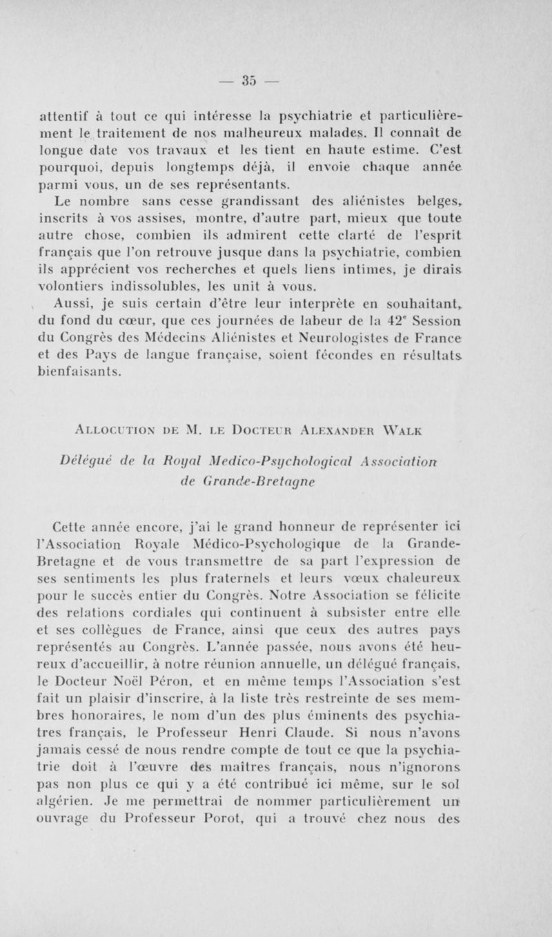 Congrès des médecins aliénistes et neurologistes de France et des pays de langue française. XXXV° session. Alger (6-11 avril 1938). Comptes rendus