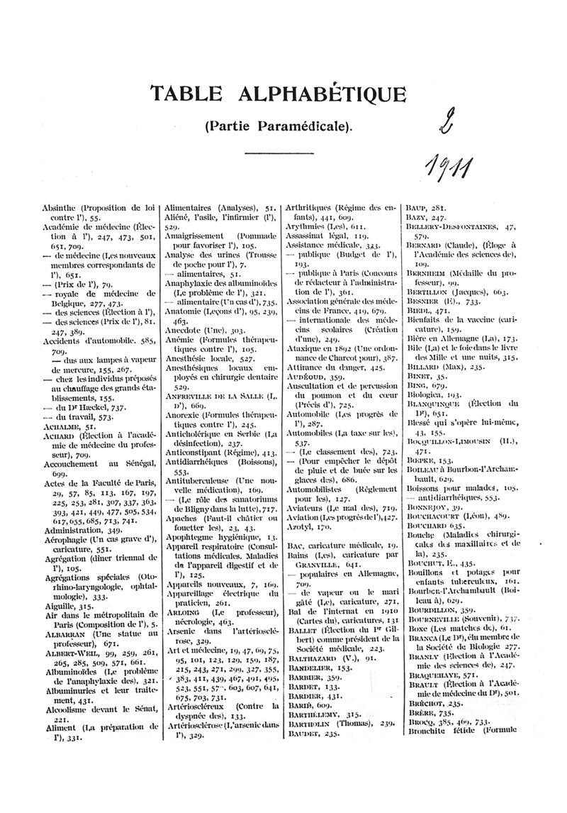 1911, n° 02, partie paramédicale. -
