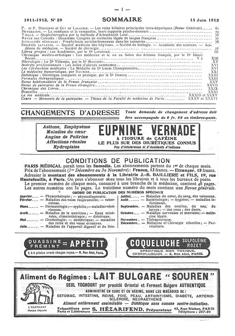 1912, n° 08, partie paramédicale. -