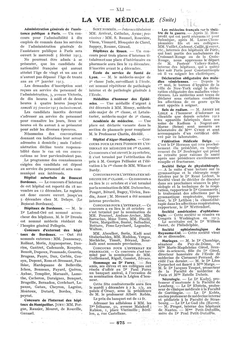1912, n° 08, partie paramédicale. -