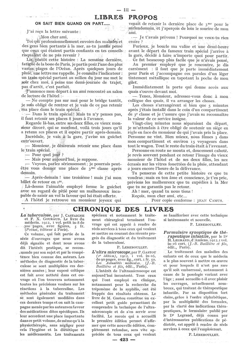 1912, n° 08, partie paramédicale. -