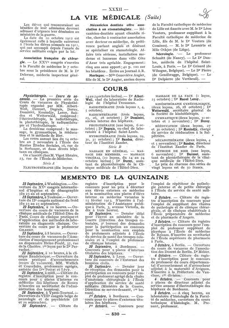 1912, n° 08, partie paramédicale. -