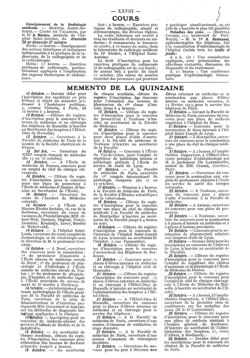 1912, n° 08, partie paramédicale. -