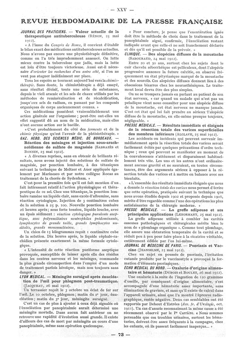 1912, n° 08, partie paramédicale. -