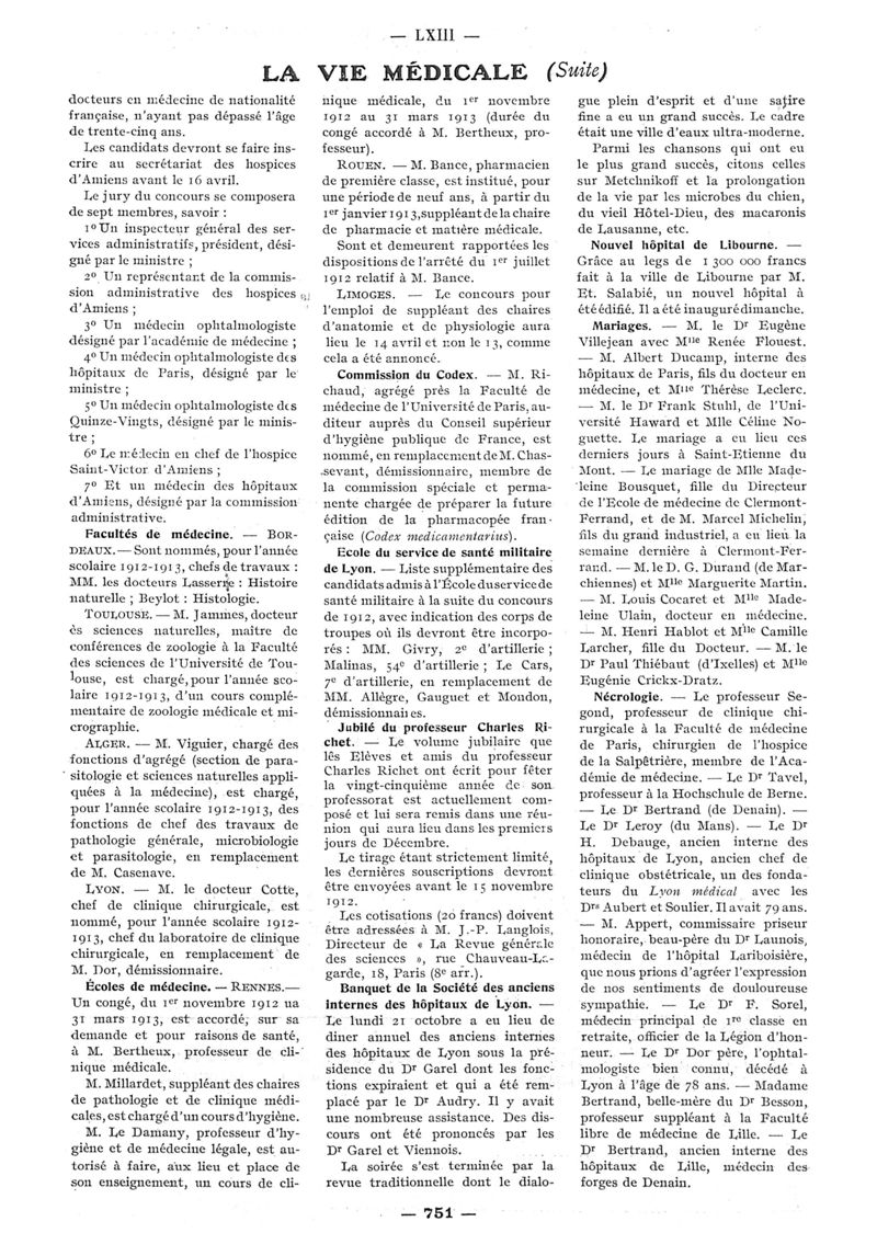 1912, n° 08, partie paramédicale. -