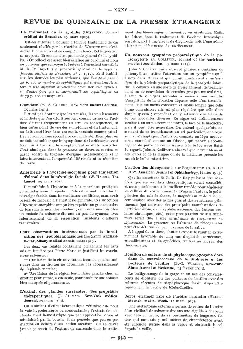 1913, n° 10, partie paramédicale. -
