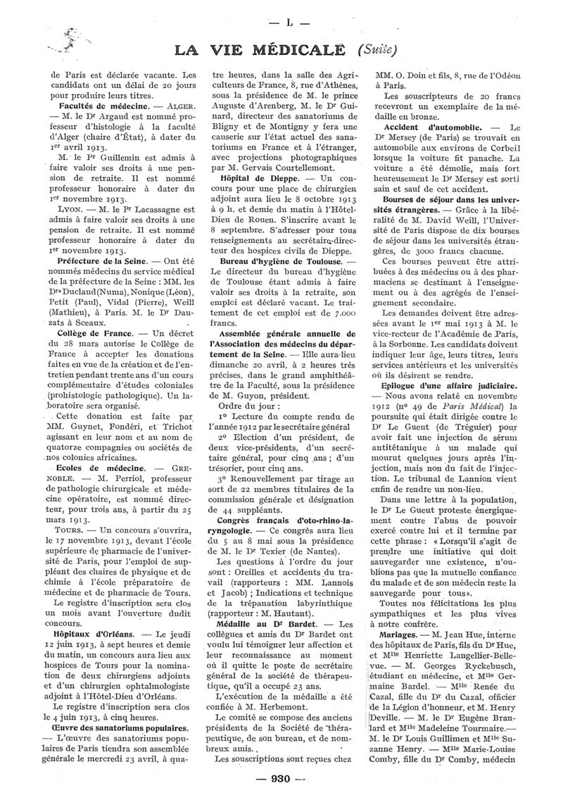 1913, n° 10, partie paramédicale. -