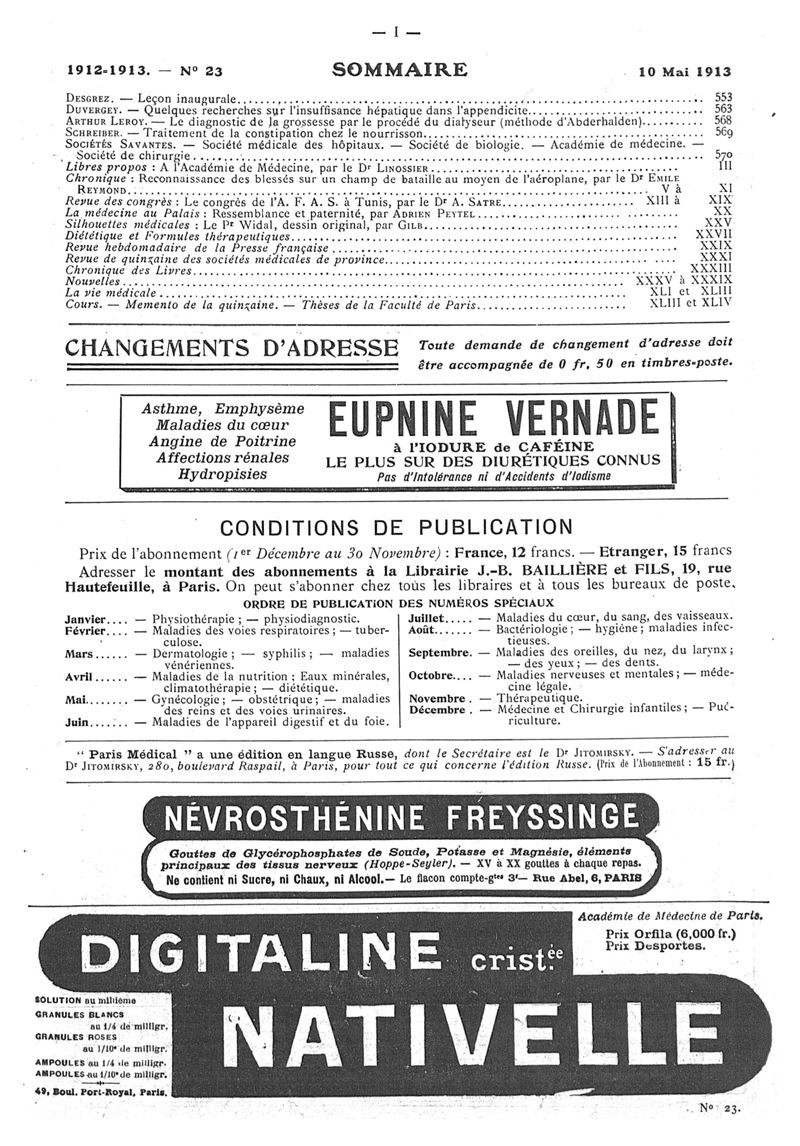 1913, n° 10, partie paramédicale. -