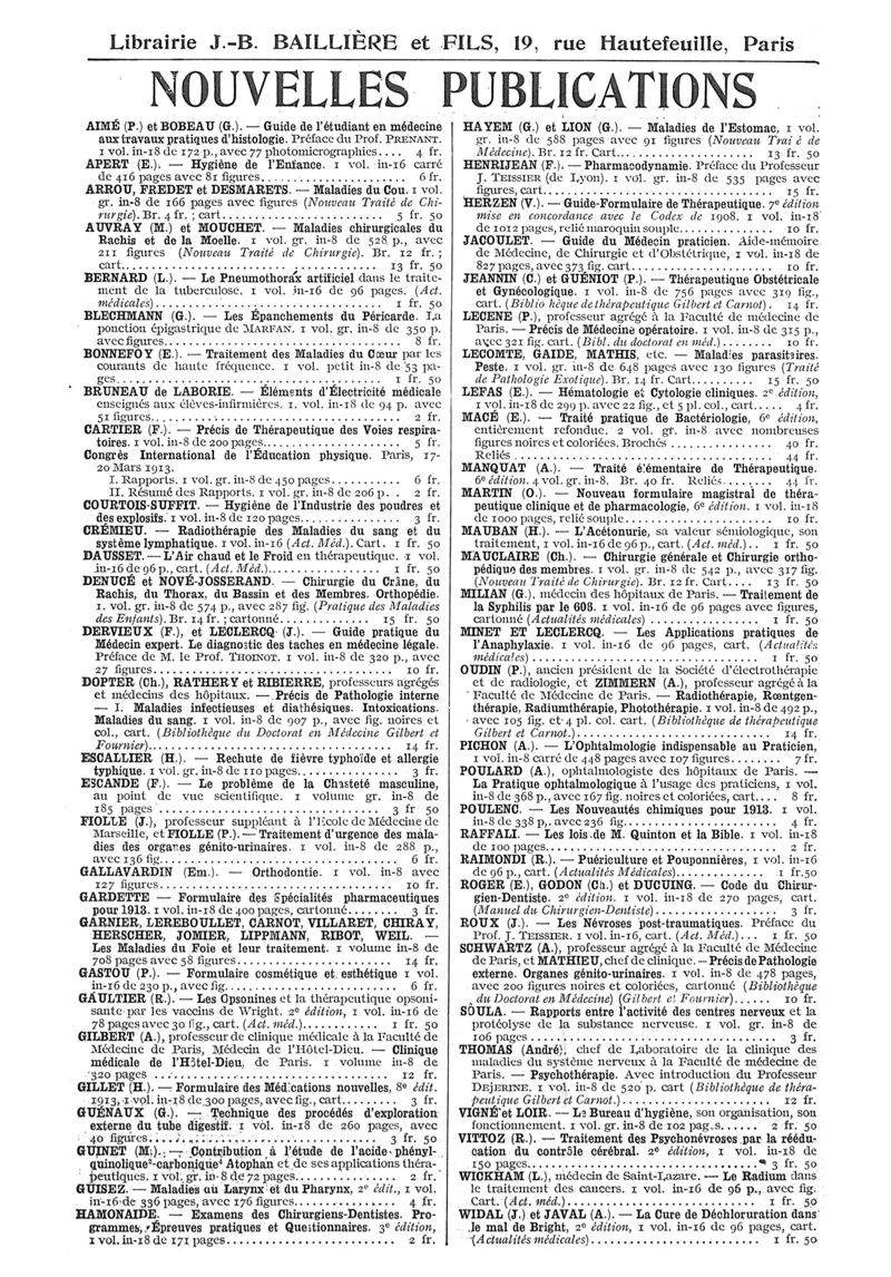 1913, n° 10, partie paramédicale. -