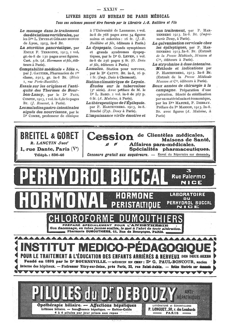 1913, n° 10, partie paramédicale. -