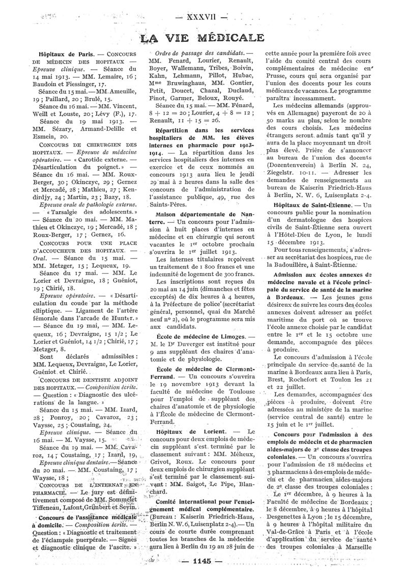 1913, n° 10, partie paramédicale. -