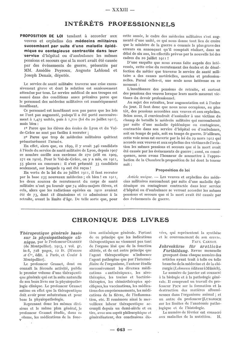 1913, n° 10, partie paramédicale. -