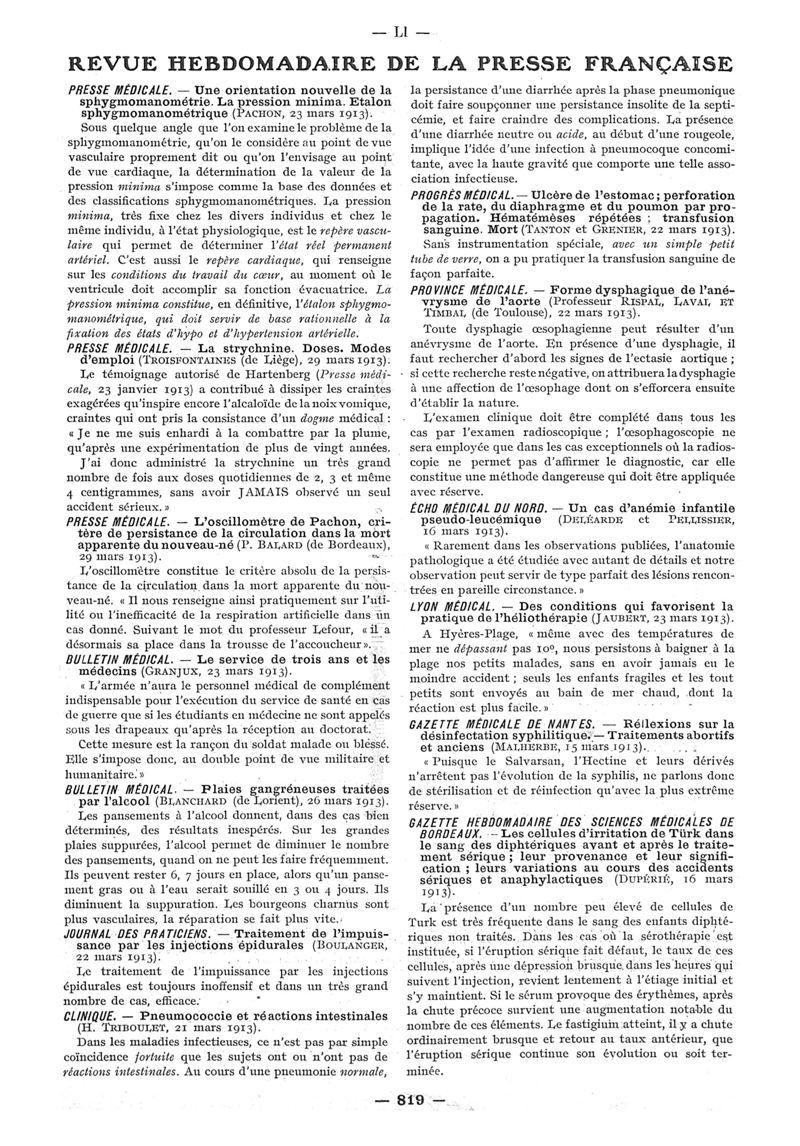 1913, n° 10, partie paramédicale. -