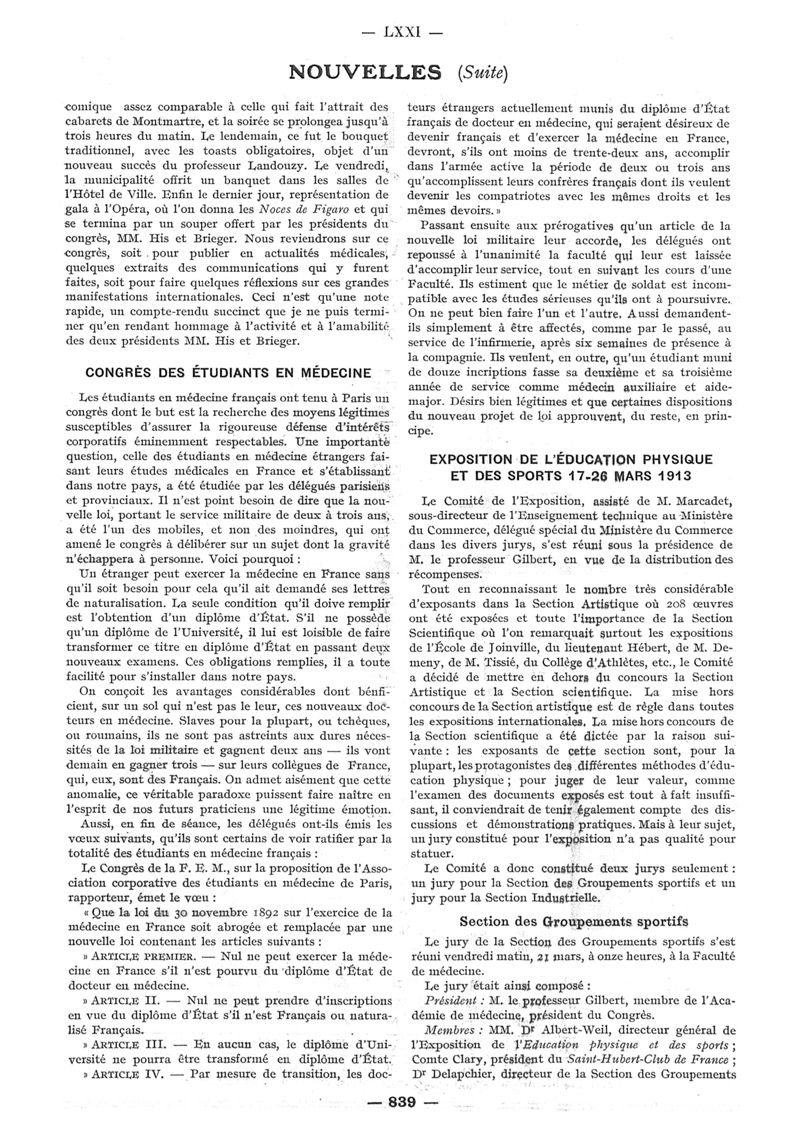 1913, n° 10, partie paramédicale. -