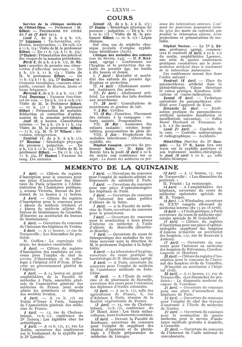 1913, n° 10, partie paramédicale. -