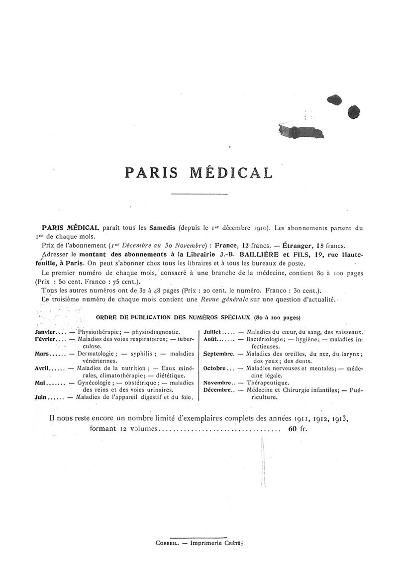 1913, n° 11, partie médicale. -