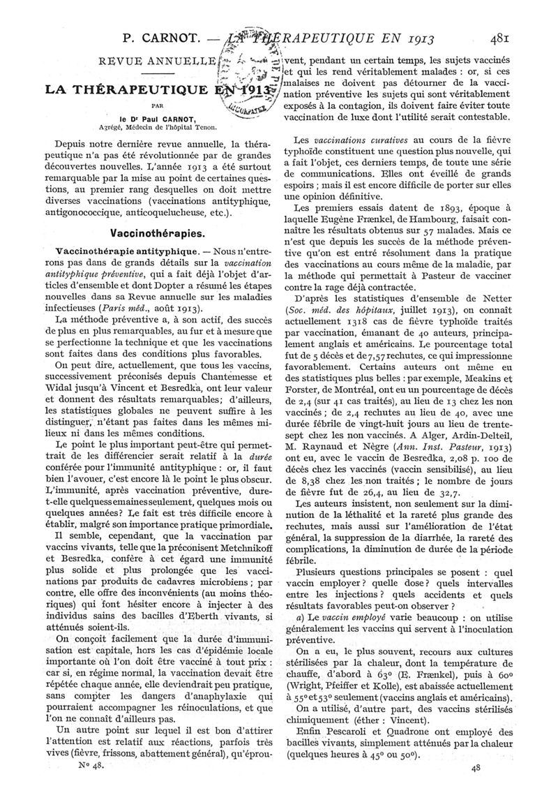 1913, n° 11, partie médicale. -