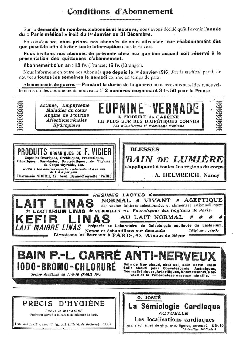 1916, n° 20, partie paramédicale. -