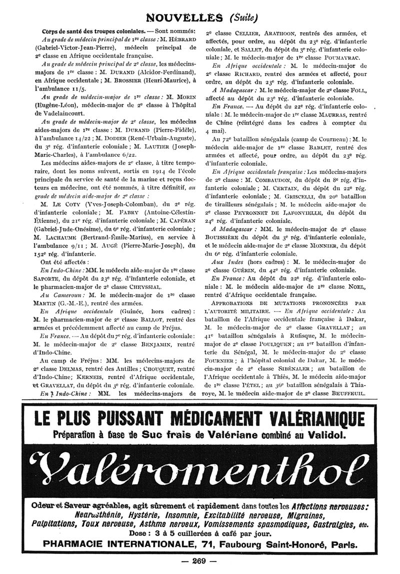 1916, n° 22, partie paramédicale. -