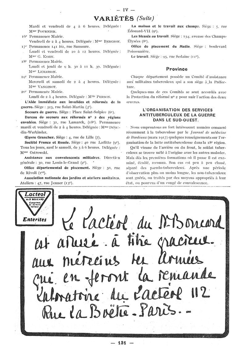 1917, n° 24, partie paramédicale. -
