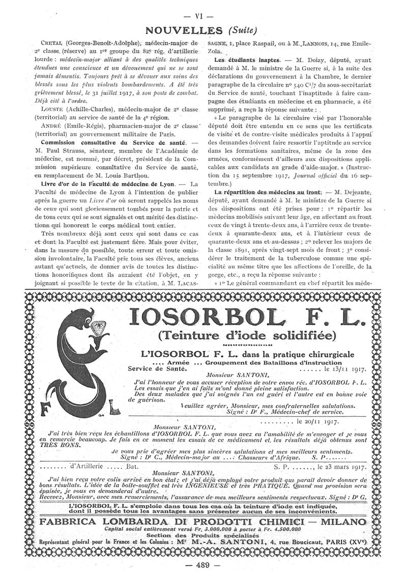 1917, n° 26, partie paramédicale. -