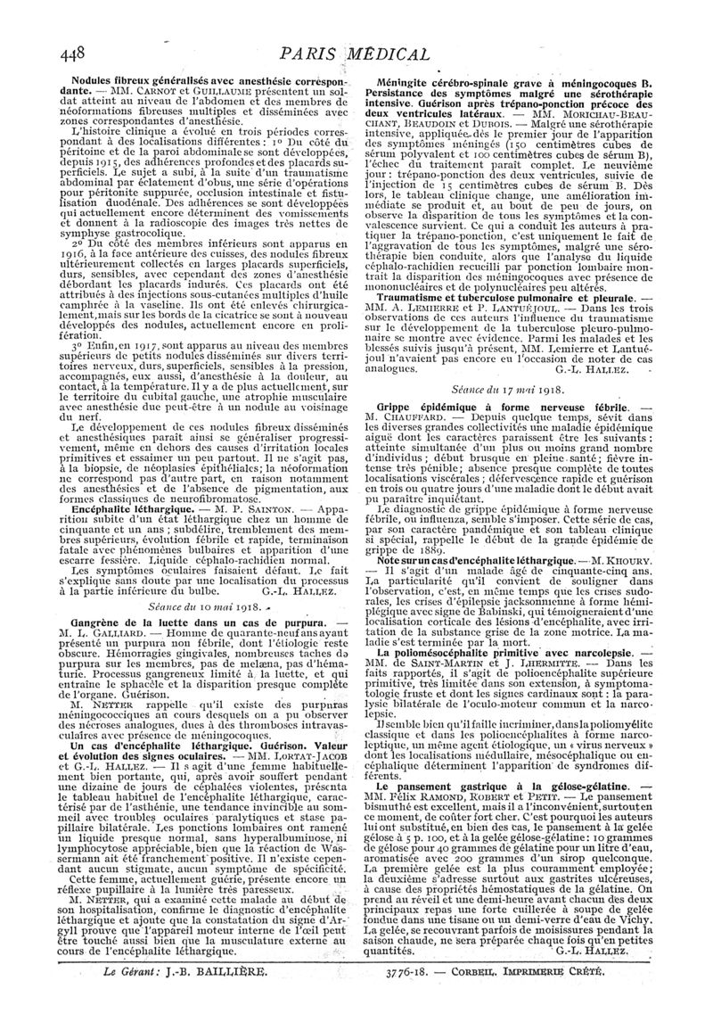 1918, n° 27, partie médicale. -