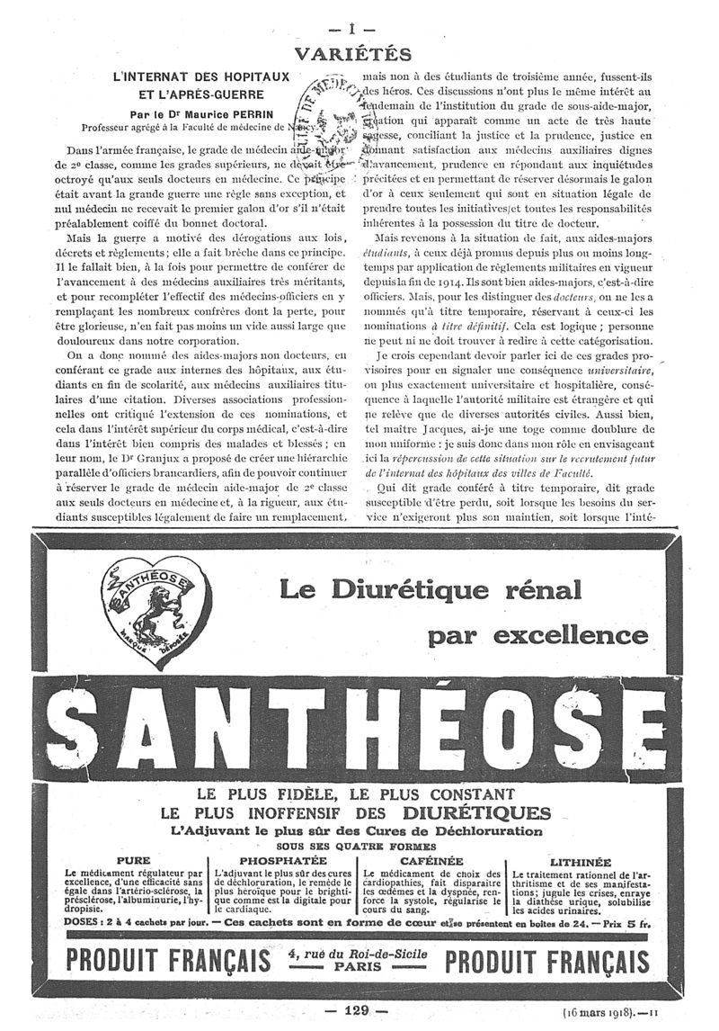 1918, n° 28, partie paramédicale. -