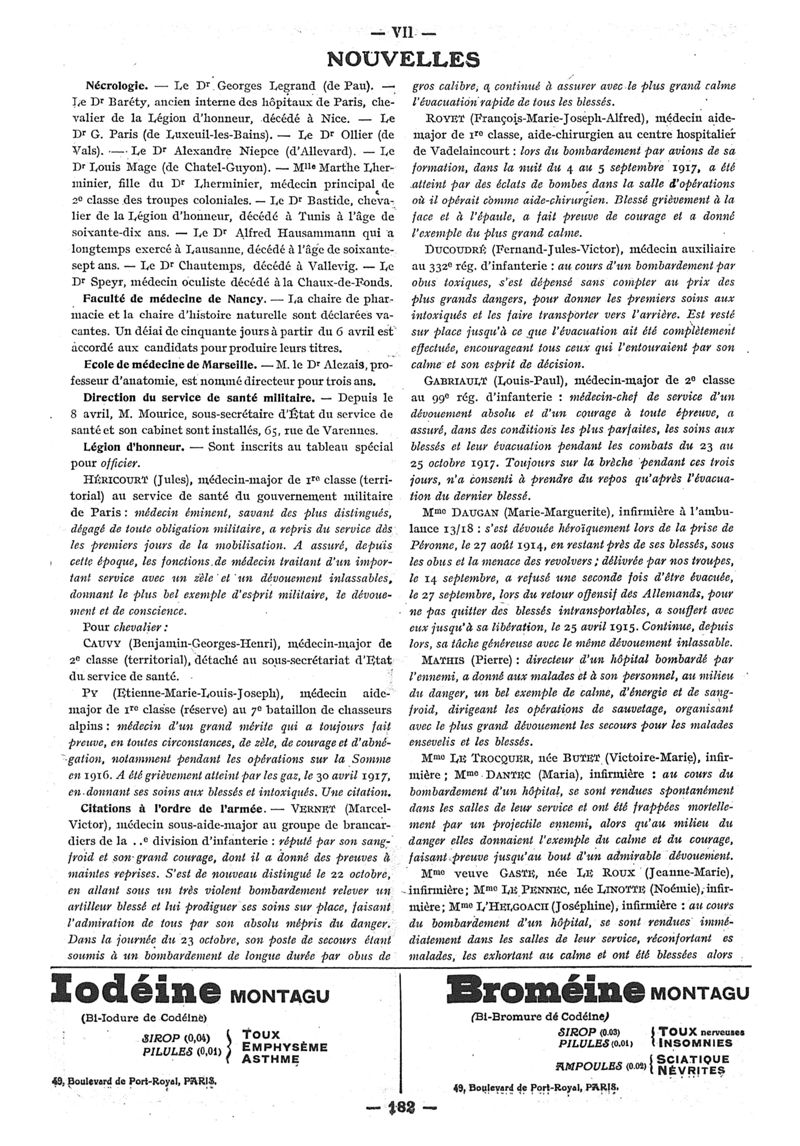 1918, n° 28, partie paramédicale. -