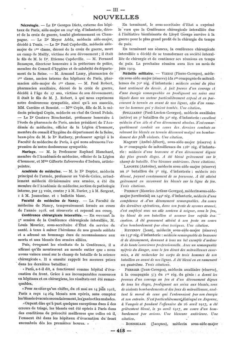 1918, n° 30, partie paramédicale. -