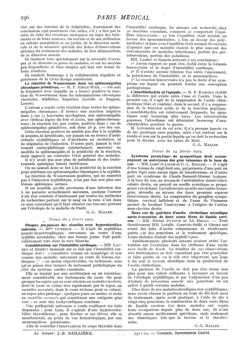 1919, n° 31, partie médicale. -