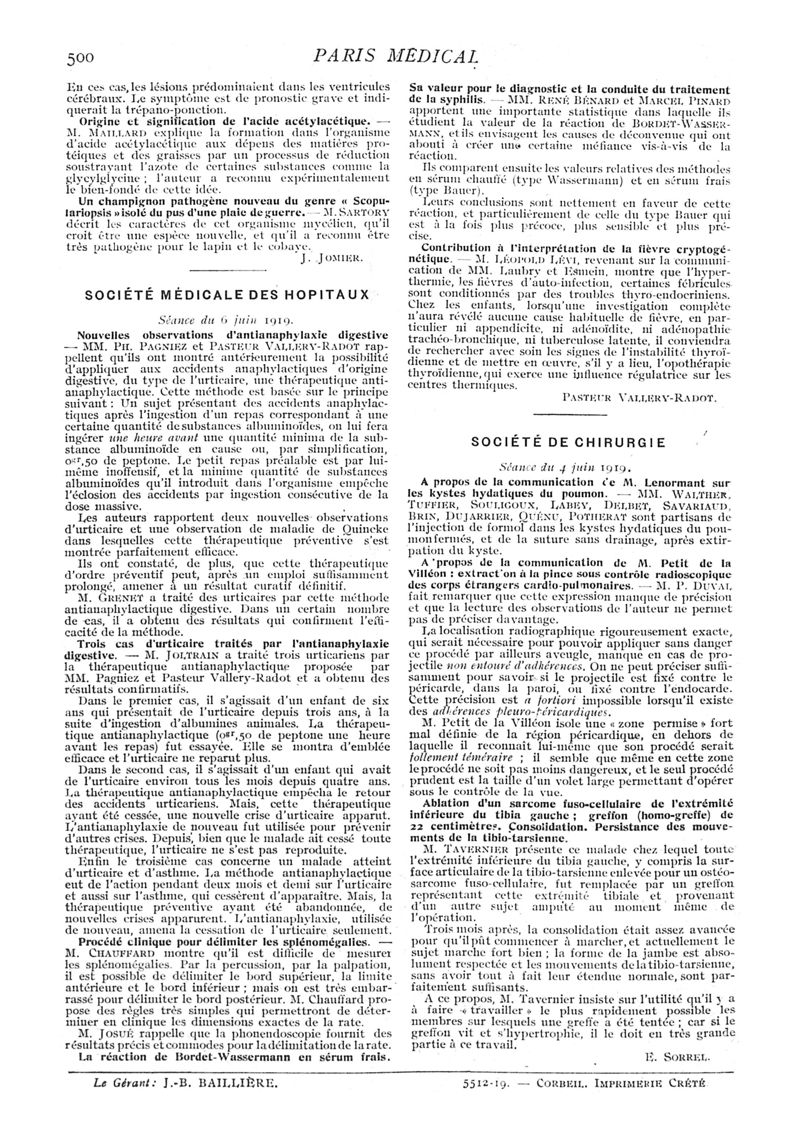 1919, n° 31, partie médicale. -