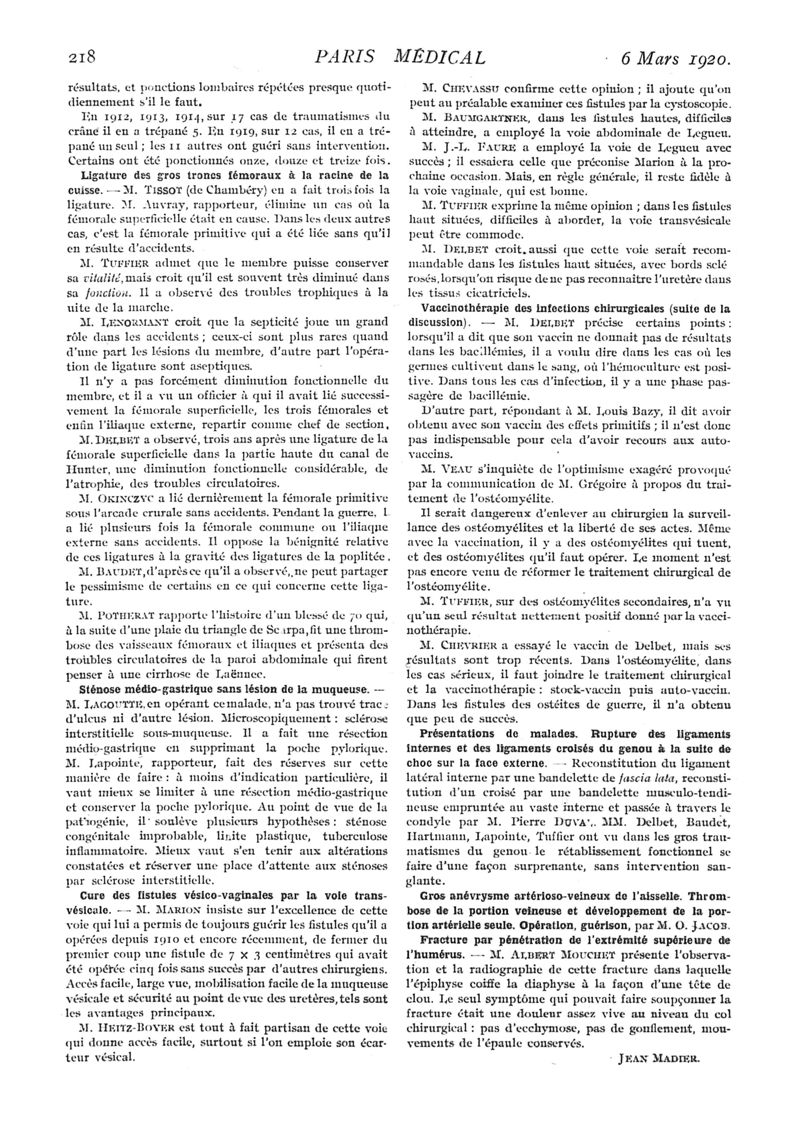 1920, n° 35, partie médicale. -