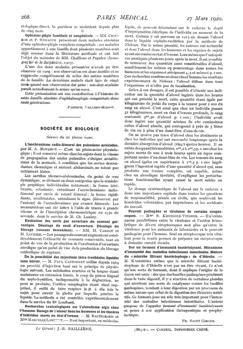 1920, n° 35, partie médicale. -