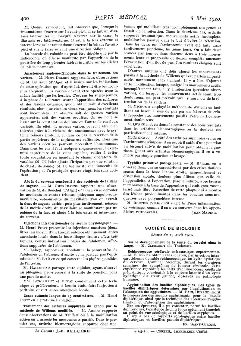1920, n° 35, partie médicale. -
