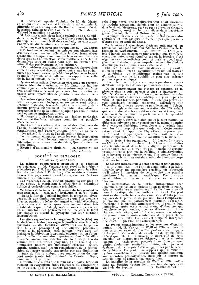 1920, n° 35, partie médicale. -