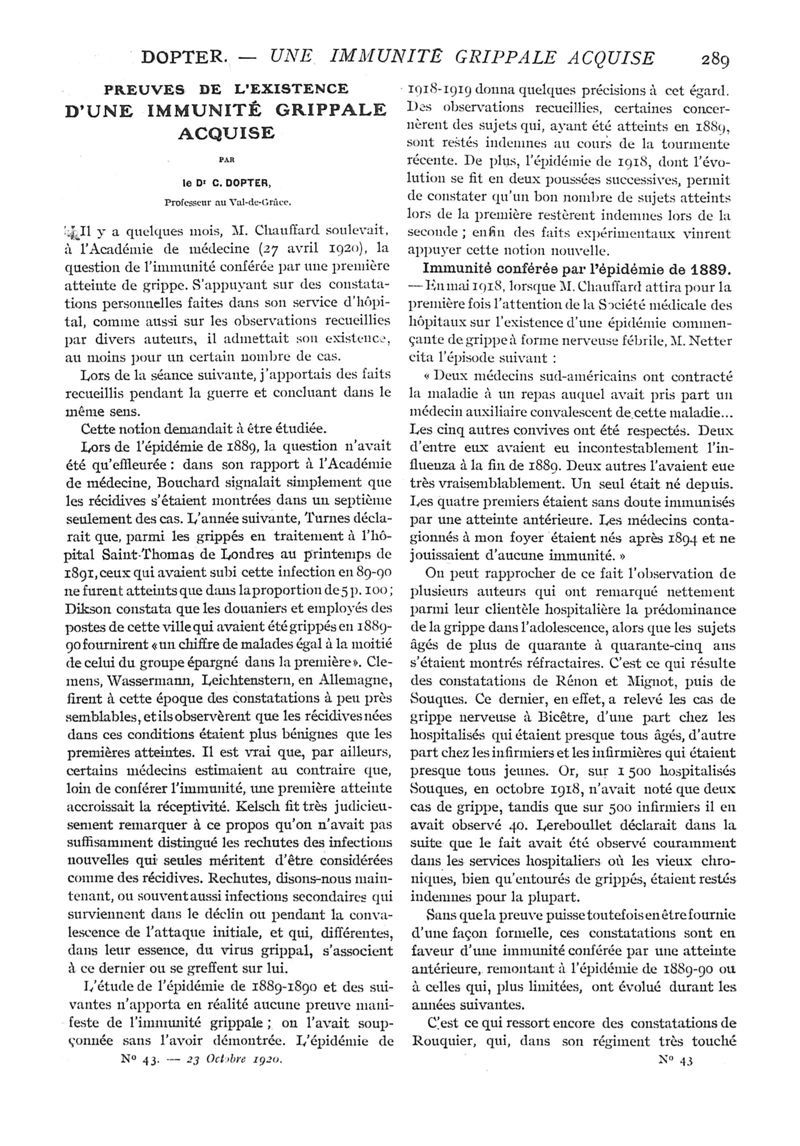 1920, n° 37, partie médicale. -