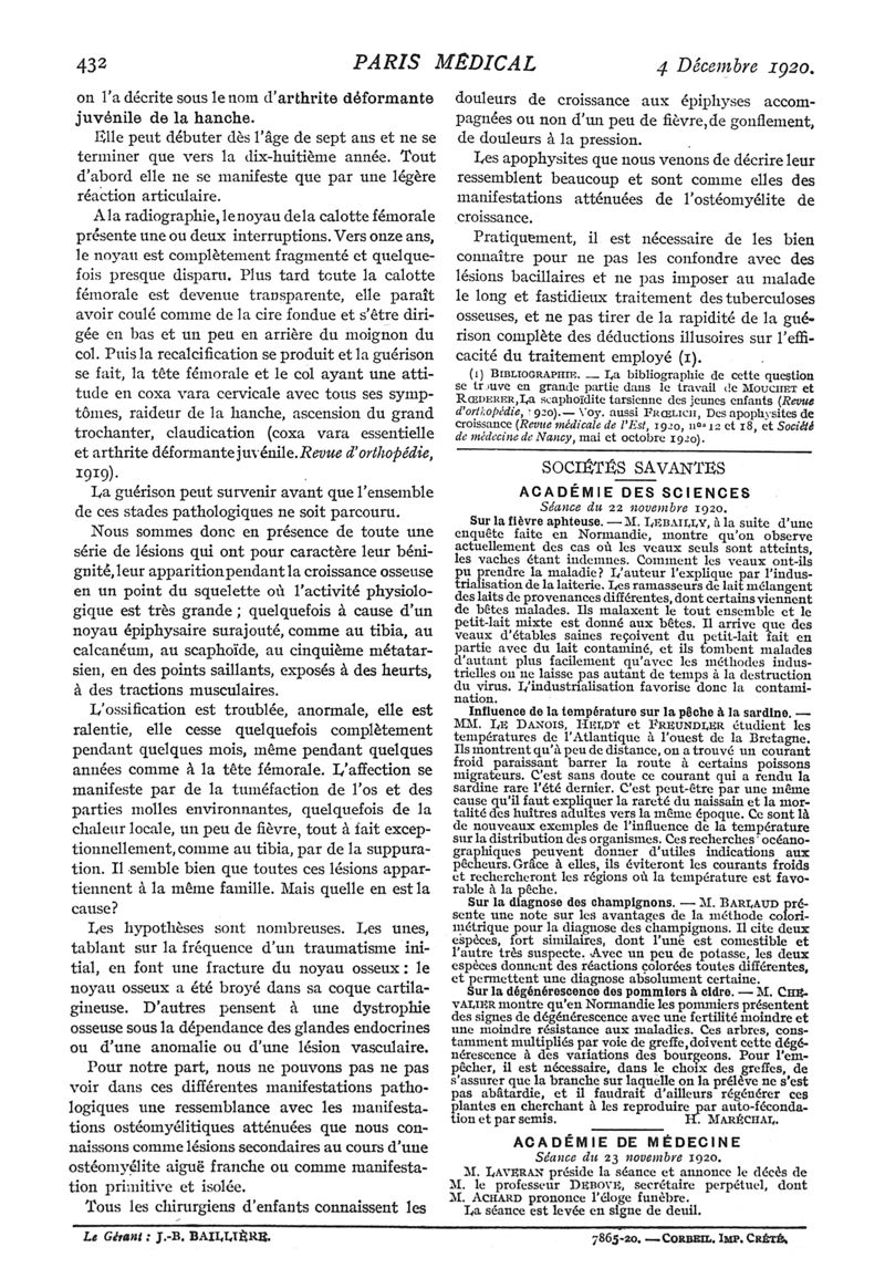 1920, n° 37, partie médicale. -