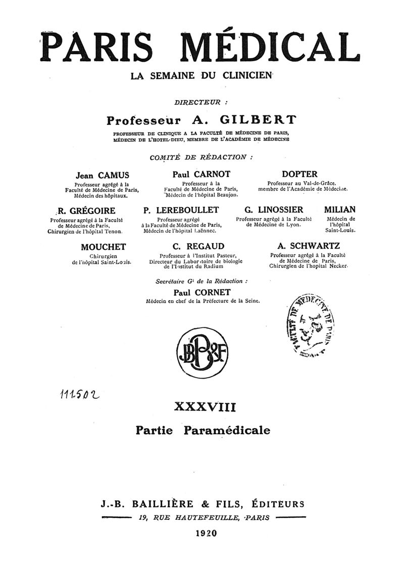 1920, n° 38, partie paramédicale. -
