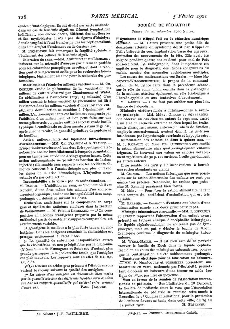 1921, n° 39, partie médicale. -