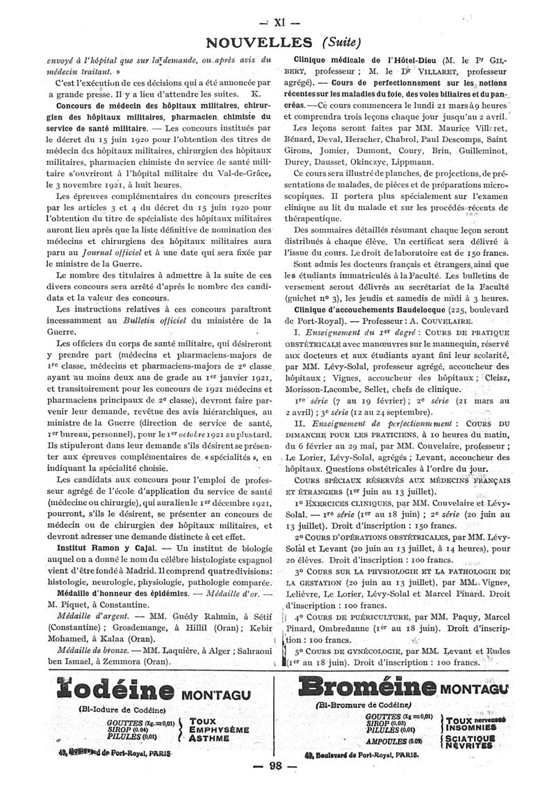 1921, n° 40, partie paramédicale. -