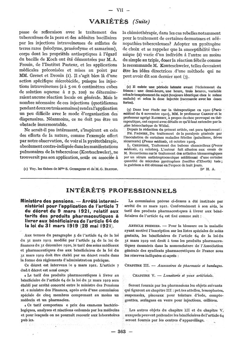 1921, n° 40, partie paramédicale. -