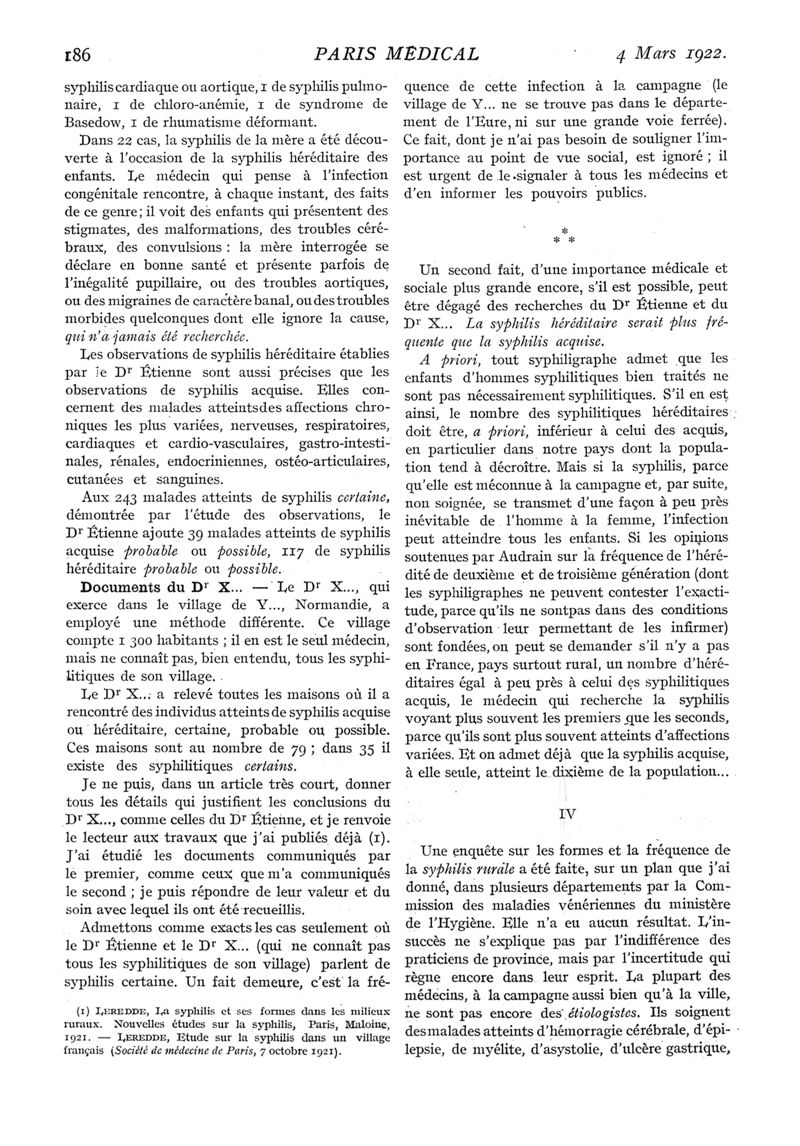 1922, n° 43, partie médicale. -