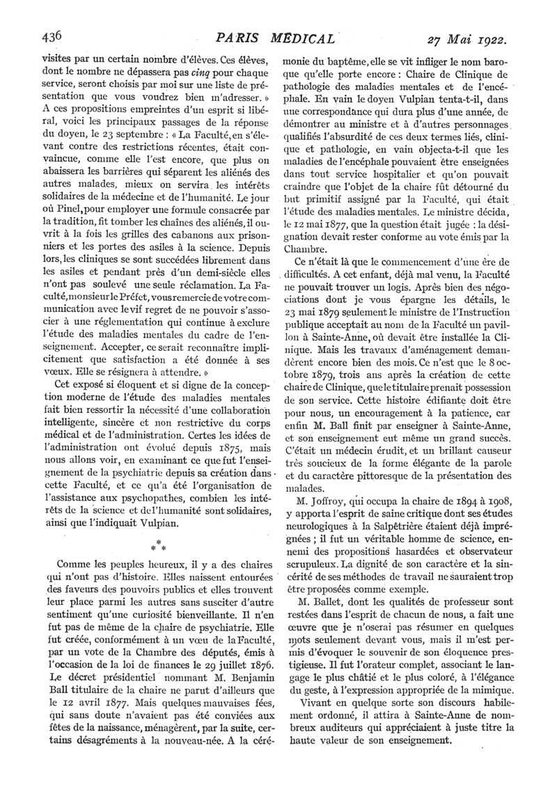 1922, n° 43, partie médicale. -