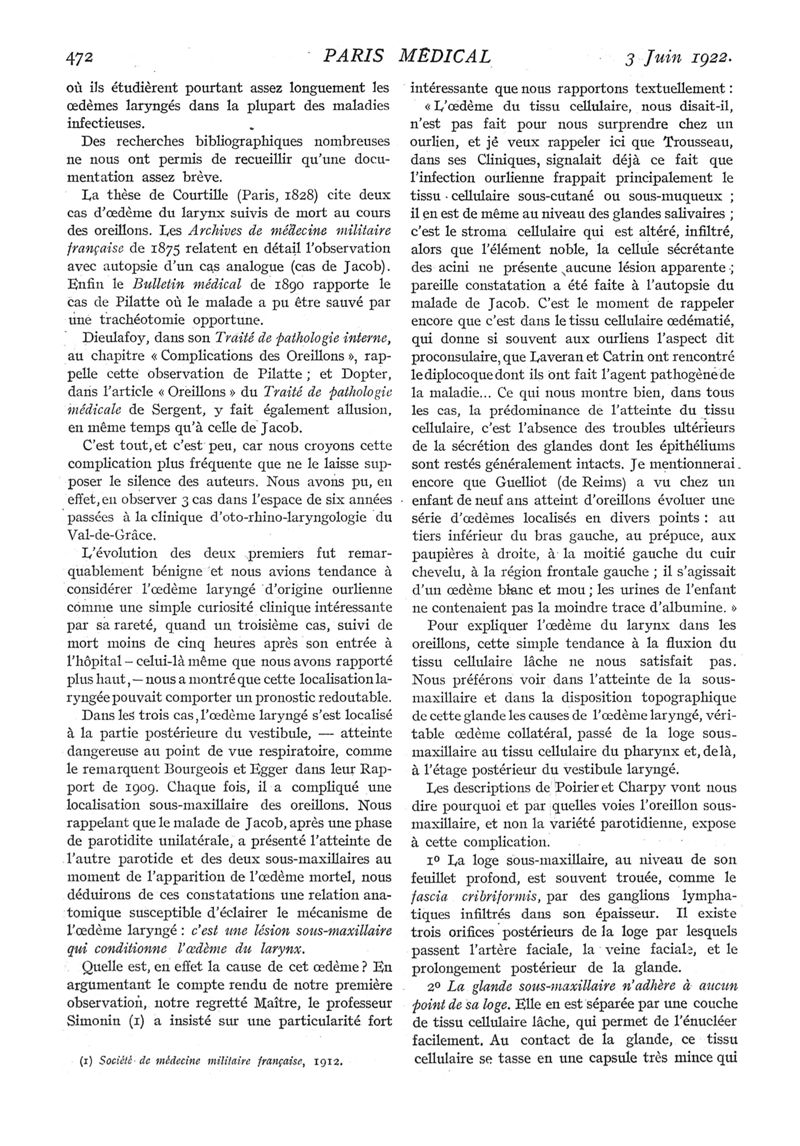 1922, n° 43, partie médicale. -