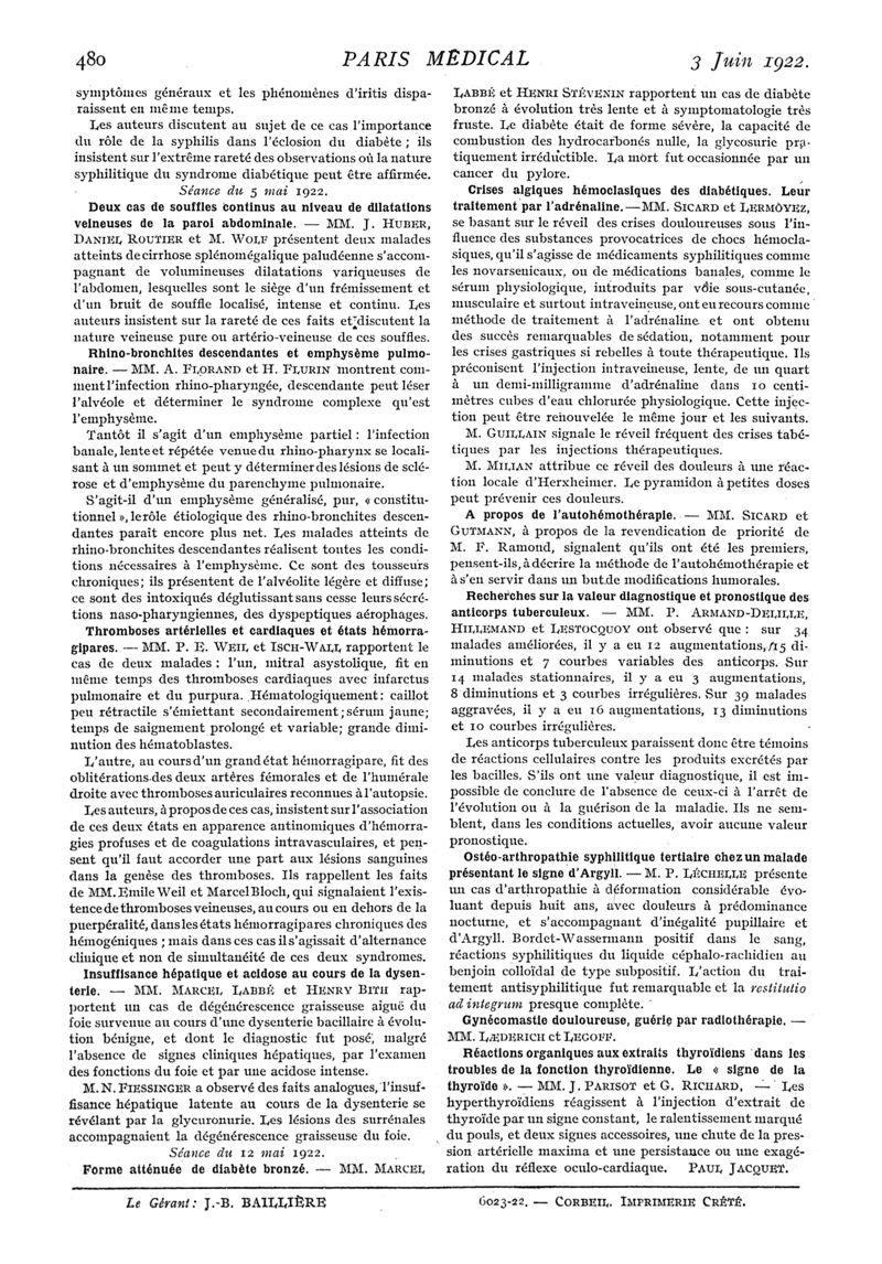 1922, n° 43, partie médicale. -