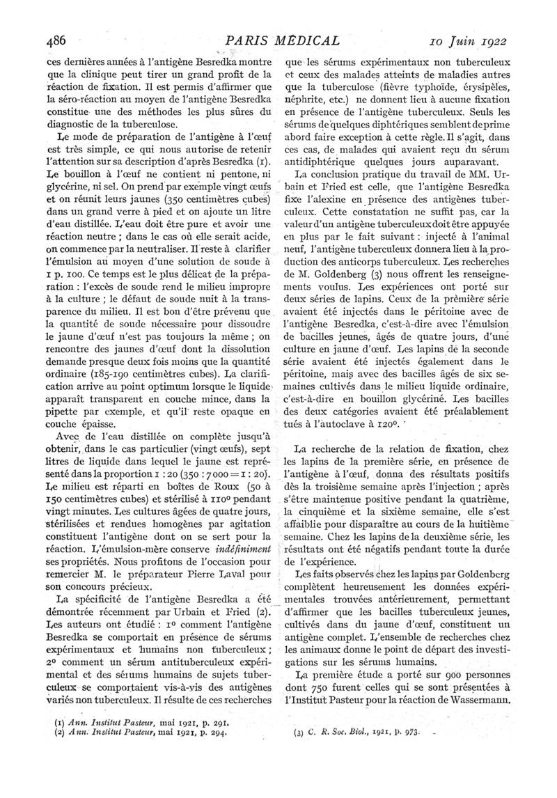 1922, n° 43, partie médicale. -