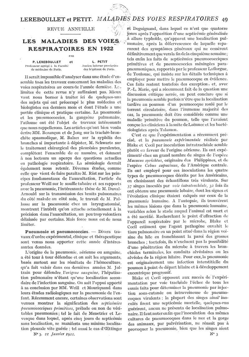 1922, n° 43, partie médicale. -