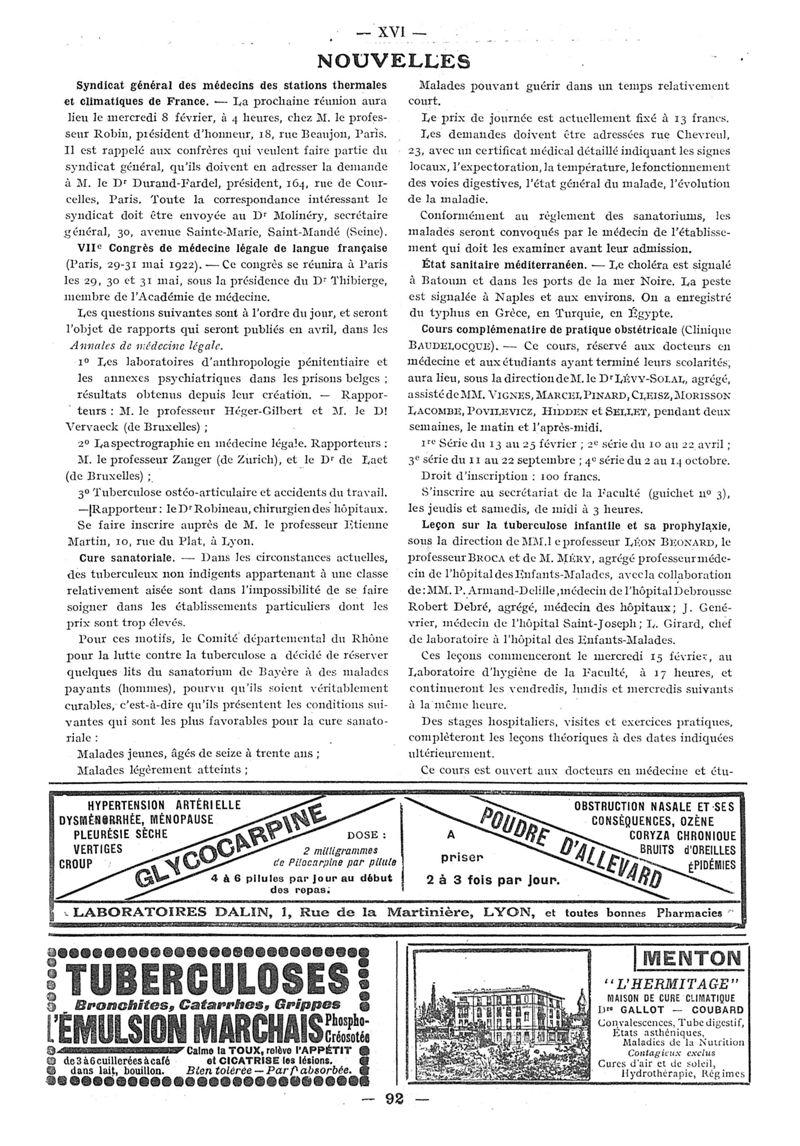 1922, n° 44, partie paramédicale. -