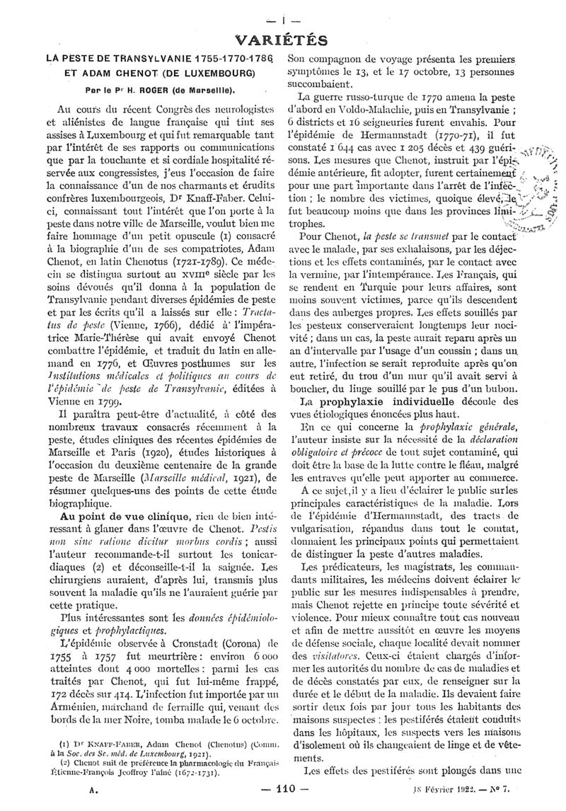 1922, n° 44, partie paramédicale. -